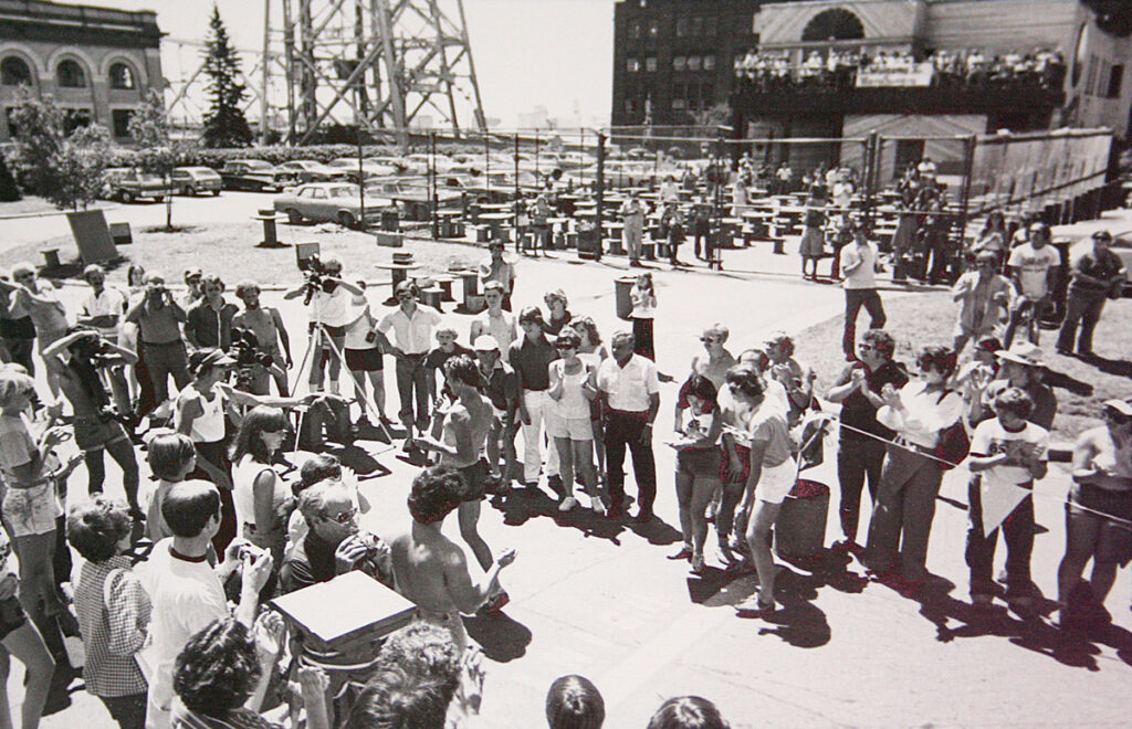 “It was the first time that I ever was scared for my life,” Daugherty says. “I don’t remember ever being more scared that something was gonna happen to someone, witnessing those huge tents blowing apart and going 80 feet in the air. The threat of disaster was so apparent. We had a very loose emergency plan. We just started opening garage doors at the Paulucci building and throwing people in there because everything was just getting ripped to pieces.